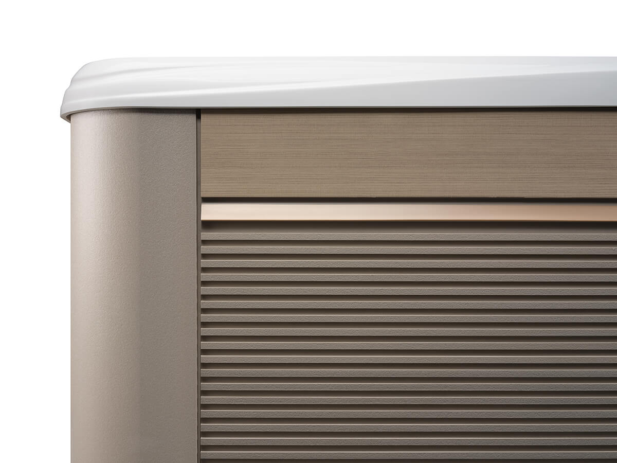 Subtle wood grain and metallic accents combine for a modern twist on a classic spa design. Available in three contemporary colors with specially chosen metallic accents, you can coordinate your spa with your house, patio or whatever you wish.